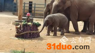 2016年7月15日,动物园为小象举办百日宴,制作水果蛋糕,邀请当地电视台进行直播,把莫莉在妈妈身边玩耍的画面做成“小象成长记”。