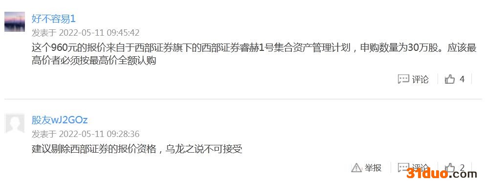 有投资者大呼“离谱”,并称“建议剔除西部证券的报价资格,乌龙之说不可接受”“应该处罚此公司”“应该最高价者必须按最高价全额认购”。