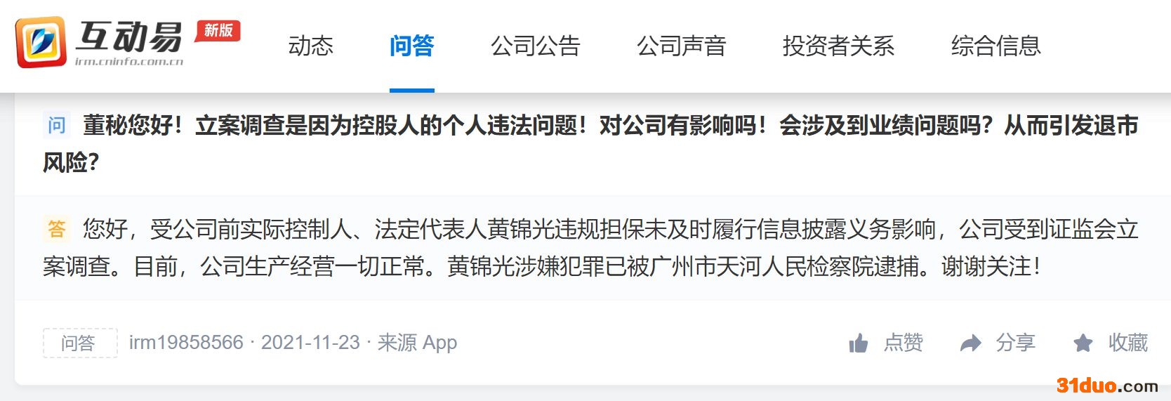 深交所互动易平台截图