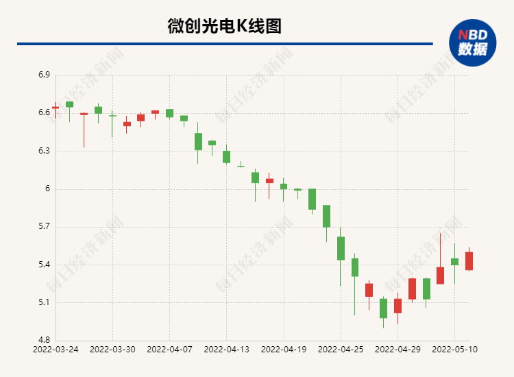5月11日收盘,微创光电报5.50元/股,较前一交易日上涨1.85%。