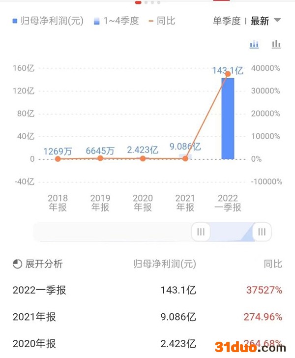 资料显示,2010年6月,九安医疗上市。随着2020年新冠疫情的暴发,九安医疗的业绩开始一直居高不下,2020年,九安医疗营收达20.08亿元,同比增长184.36%,净利润达2.42亿元,同比增长264.68%;2021年,九安医疗业绩延续了快速增长势头,实现营收23.97亿元,同比增长19.36%,净利润9.09亿元,同比增长274.96%;2022年一季报显示,公司实现营收217.37亿元,同比增长6646.79%;净利润143.12亿元,同比增加37527.35%。换言之,今年前3个月,九安医疗平均每天净赚1.59亿元!