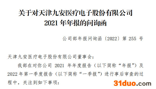 中国网财经5月12日讯(记者 杜丁)2022年首季度净赚143亿的天津九安医疗电子股份有限公司(“九安医疗,002432SZ)还未来得及平复喜悦的心情,就接到了关于2021年年报的问询函,要求说明公司试剂盒产品毛利率水平较高的原因及商业合理性。