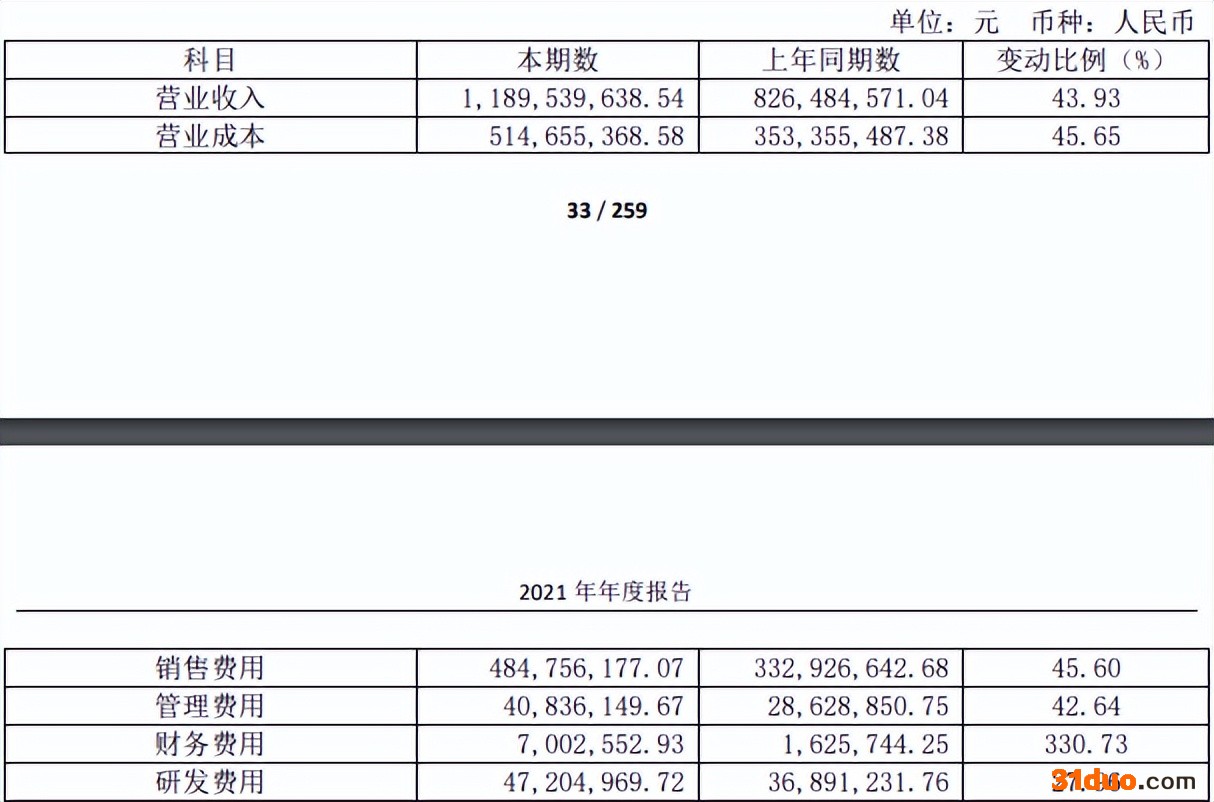 另一方面,销售费用则是公司的一大成本支出,从2020年的3.33亿元增长至2021年的4.85亿元,同比增长45.6%,营收占比从40.31%微增至40.76%。而公司2021年研发费用仅为4720.5万元,远低于销售费用支出,同比增长27.96%。