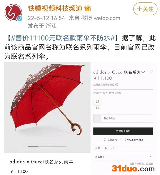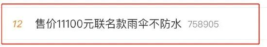 5月12日,#售价11100元联名款雨伞不防水#登上热搜。