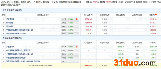 中国经济网北京5月13日讯 长城汽车(601633.SH)今日股价涨停,截至收盘报29.57元,涨幅10.01%。龙虎榜数据显示,买入长城汽车金额
