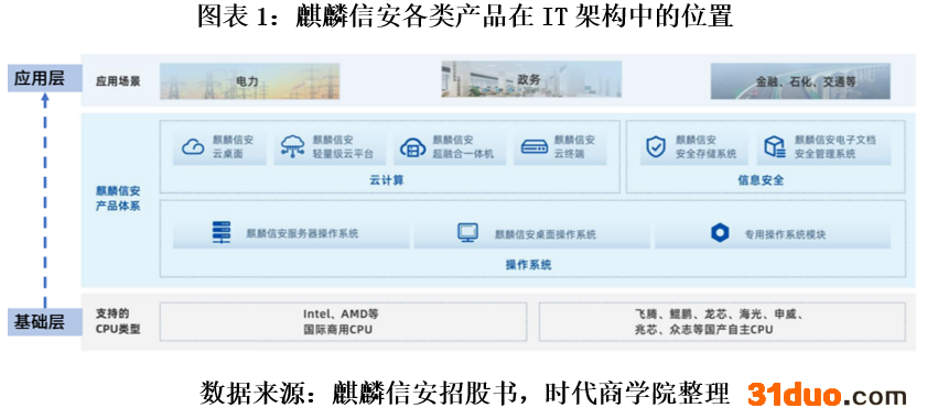 招股书显示,麒麟信安主要从事操作系统产品研发及技术服务,并将业务延伸到信息安全产品与云计算产品。
