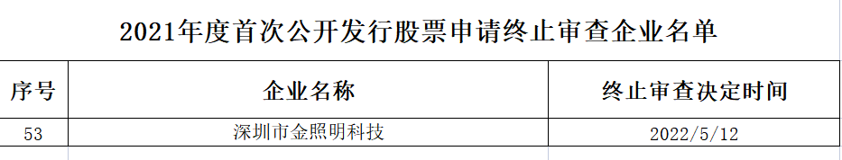 中国经济网北京5月16日讯 据证监会网站消息,证监会决定终止对深圳市金照明科技股份有限公司(以下简称“金照明”)首次公开发行股票申请。
