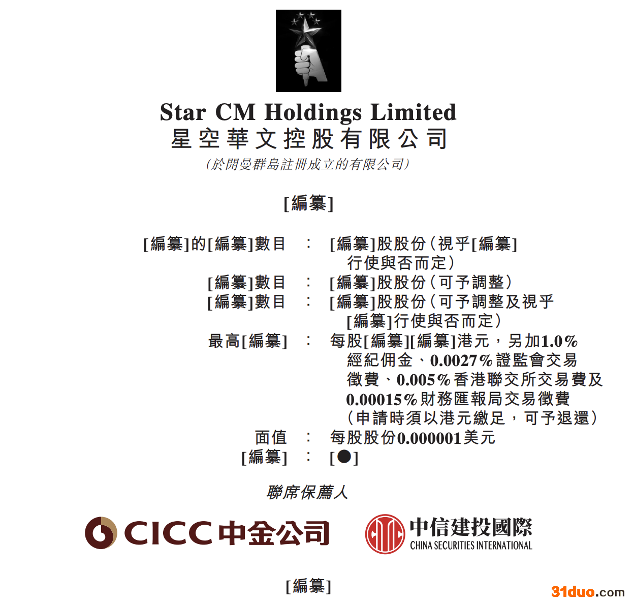 中金公司和中信建投国际为其主承销商