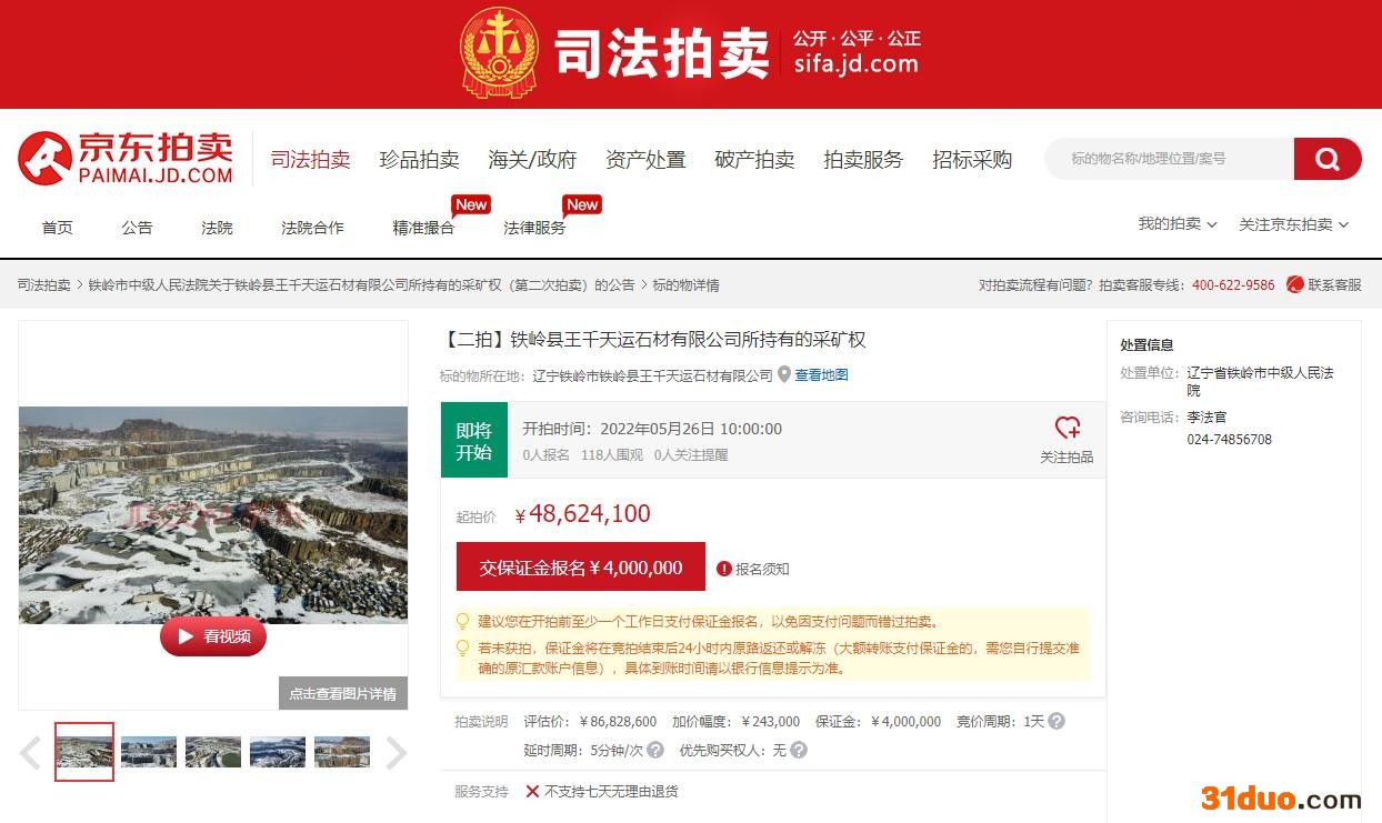 除了购房安家,随着互联网的发展,拍卖也正在成为一种新兴的消费投资方式,受到越来越多的投资者青睐。京东拍卖618期间,可用于投资的大额标的云集,公司股权、商业地产项目等不容错过。其中,李嘉诚控股的上海长润江和房地产发展有限公司10.77%的股权,起拍金额为14.79亿。铁岭县王千天运石材有限公司所持有的采矿权以4862万起拍,拍下它切实体验“家里有矿”的感觉。