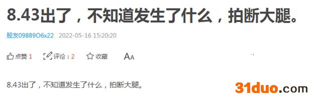 但也有投资者表示卖早了。“8.43出了,不知道发生了什么,拍断大腿。”