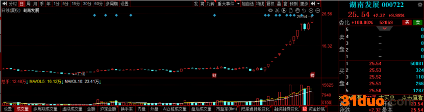 值得注意的是,湖南发展今日收盘再度涨停,最近14个交易日内累计涨幅199%。拉长时间看,自1月28日年内低点迄今股价累计最大涨幅达259%。