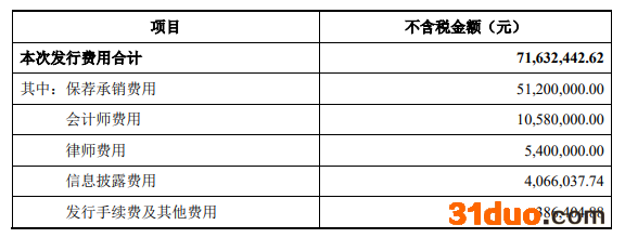 普蕊斯本次发行费用总额为7163.24万元,其中华泰联合证券获得保荐承销费用5120.00万元。