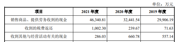 2019年至2021年,普蕊斯主营业务收入分别为30,354.47万元、33,529.06万元及50,296.67万元,销售商品、提供劳务收到的现金分别为29,906.19万元、32,441.54万元和46,340.81万元。