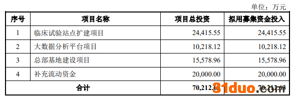 普蕊斯4月29日披露的招股书显示,公司首发募集资金7.02亿元,投向临床试验站点扩建项目、大数据分析平台项目、总部基地建设项目、补充流动资金。
