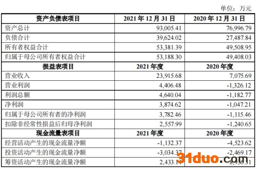 标的公司成都润博主营业务以生产、销售导弹结构件、靶弹等军品为主,以雷达天线、工业CT检测等其他产品和技术服务为辅。标的公司2020年、2021年主要财务数据如下: