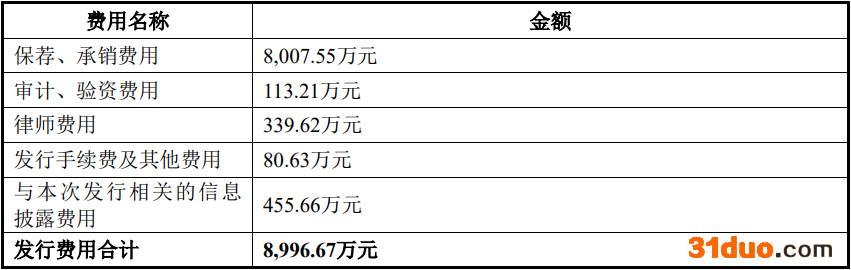 兆讯传媒发行费用总额为8996.67万元,其中保荐机构安信证券股份有限公司获得保荐、承销费用8007.55万元。