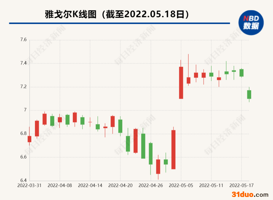 5月18日,雅戈尔股价下跌,截至收盘报收7.04元,跌3.43%,总市值325.87亿元。