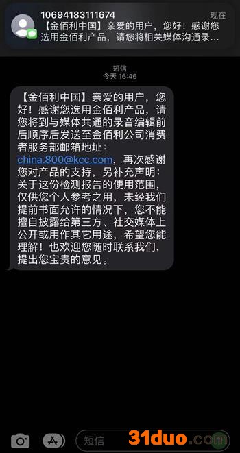 此外,高洁丝方面还提出,考虑该事件已引起舆论关注,要求该消费者将与媒体沟通的录音“编辑好前后顺序”,发至公司指定邮箱。经核实,该邮箱系高洁丝品牌所属金佰利(中国)有限公司官网邮箱。