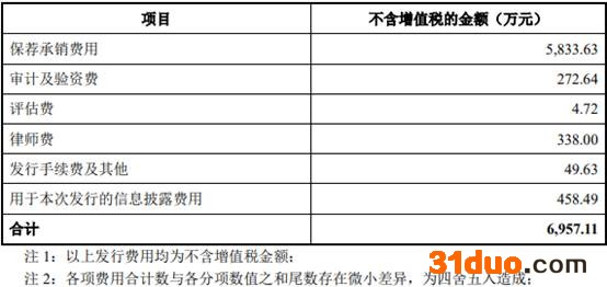 中科江南本次发行费用总额为6,957.11万元,其中,华泰联合证券有限责任公司获得保荐承销费用5,833.63万元。