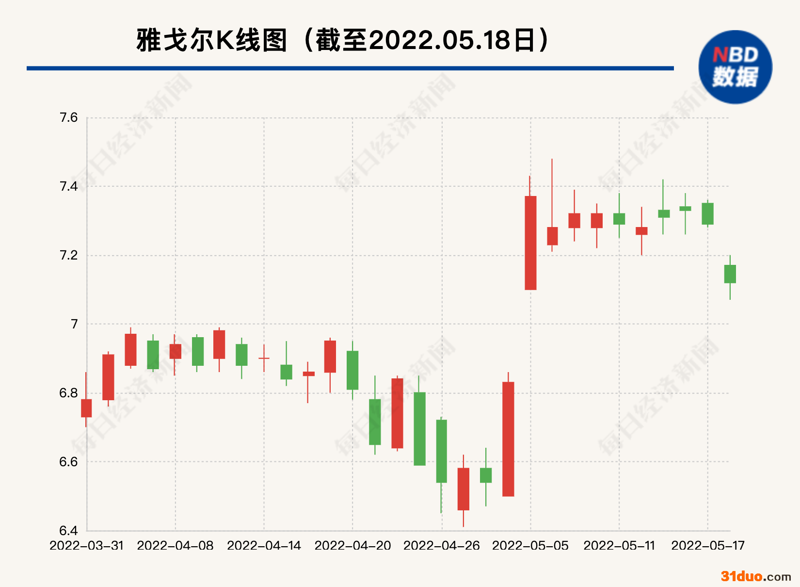 截至18日发稿,雅戈尔每股报7.11元,跌2.47%,总市值329.6亿元。
