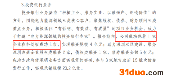 图为英大证券在2021年年报中对公司投行业务的总结情况