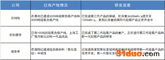 国内在硅基负极领域也开始布局,其中贝特瑞、杉杉股份和璞泰来等一线负极厂商走在了前列,而该领域几乎看不到中科电气的身影。