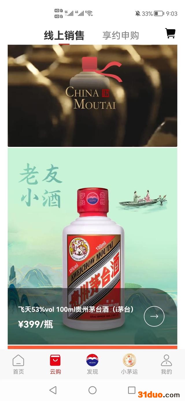 经过49天试运行,茅台数字营销平台i茅台于5月19日正式运行,同时增加上线53度飞天100ml(下称“飞天小酒”)等5款产品。