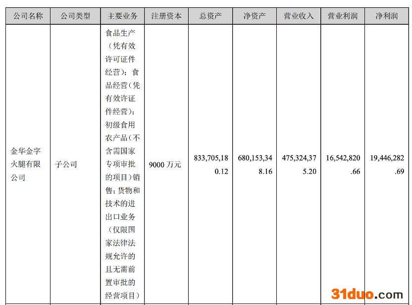 金华金字为上市公司金字火腿极为重要的全资子公司。2021年,金华金字实现营业收入4.75亿元、净利润1944.63万元,在过去一年约为上市公司贡献了约94%的营收。