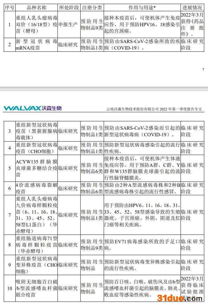 根据年报,2022年沃森生物将继续进行研发投入,全力推进二价HPV疫苗申报生产和上市的工作,加快新冠疫苗、九价HPV疫苗、ACYW135群脑膜炎球菌多糖结合疫苗、多联疫苗等产品的临床研究和产业化进度。