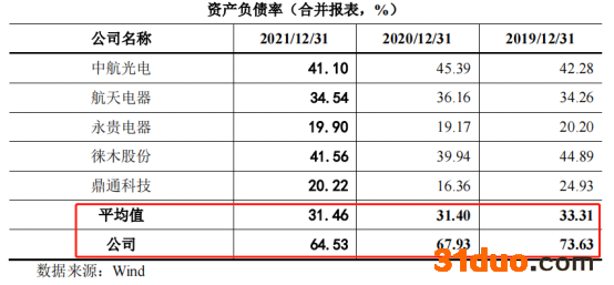 除此之外,华达股份偿债能力不及同行业可比公司,公司资产负债率远高于行业均值。报告期内,公司资产负债率分别为73.63%、67.93%和64.53%,虽然资产负债率逐年下降,但仍远高于同行业可比公司。