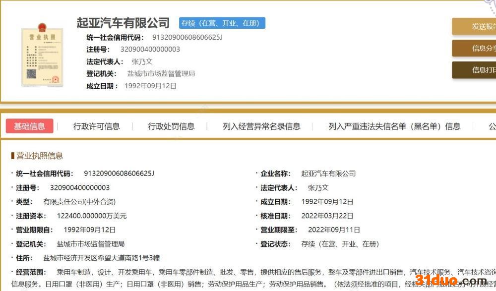 2021年12月,东风集团正式退出东风悦达起亚,东风集团25%股权转让完成,转让价格2.97亿元,至此,结束了三者长达20年的合作。东风悦达起亚也由三方合资转变为由悦达、起亚二方持股。今年3月份,记者从国家企业信息公示系统获悉,东风悦达起亚正式更名为起亚汽车有限公司,法定代表人为张乃文。