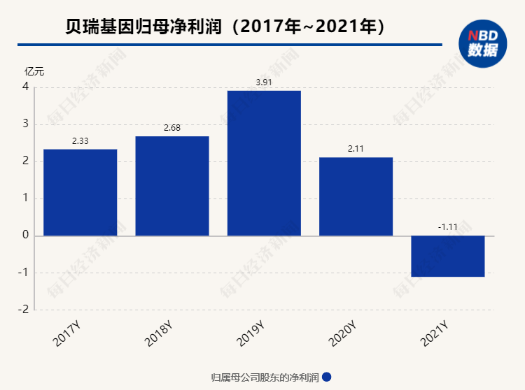 2017年,贝瑞基因借壳天兴仪表上市,被称为“基因检测第一股”。上市时,贝瑞基因原股东许下三年业绩承诺,期满后,贝瑞基因以100.8%的成绩“踩线”达标。但2020年起,贝瑞基因的业绩就开始急转直下,2020年净利润同比下滑超4成,去年则由盈转亏。