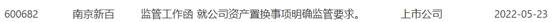 中国经济网北京5月24日讯 上交所网站昨日披露监管工作函,要求南京新百(600682.SH)就公司资产置换事项明确监管要求,涉及对象为上市公司。
