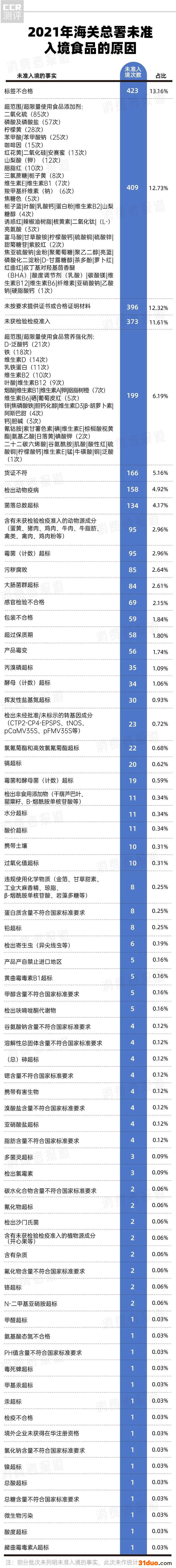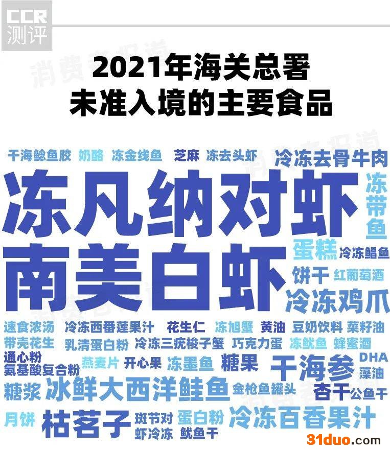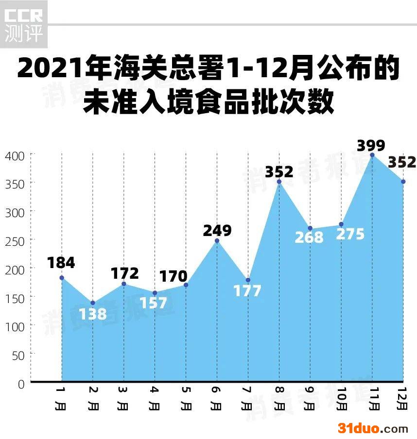 截至2022年1月,中国海关总署在官网发布了2021年度1-12月全国未准入境食品化妆品信息。