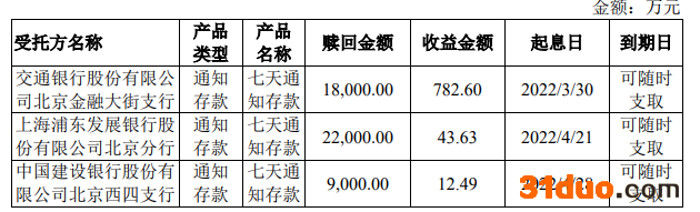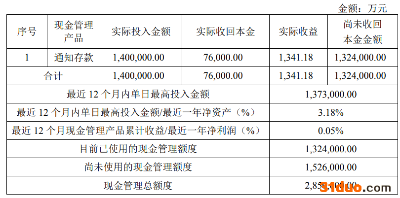 2022年5月25日,公司对上述产品再次进行部分赎回,收回本金人民币49,000万元,获得收益人民币838.72万元,相关现金管理产品本金及收益全额归还募集资金账户。具体情况如下: