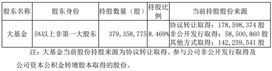 截止公告披露日,大基金持有三安光电股票3.79亿股,约占公司总股本的8.469%。