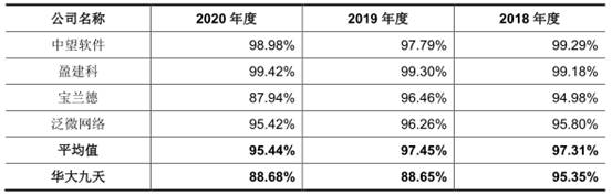报告期内,可比上市公司毛利率均值分别为97.31%、97.45%、95.44%,华大九天的毛利率低于可比公司。