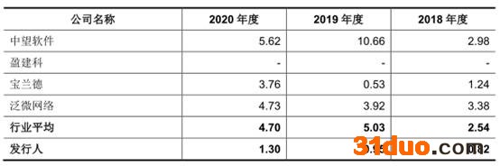 报告期内,公司应收账款周转率分别为2.23、2.81、2.48,低于同行业可比上市公司应收账款周转率均值8.05、7.04、6.89。