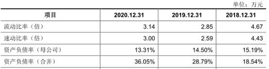 报告期内,华大九天合并资产负债率分别为18.54%、28.79%、36.05%,流动比率分别为4.67、2.85、3.14,速动比率分别为4.43、2.59和3.00。