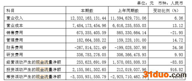 搜狐财经翻阅财报发现,现金流减少主要由于海天味业上半年营业成本高达78.74亿元,较2020年同期多了9亿元,同比上涨13.12%。