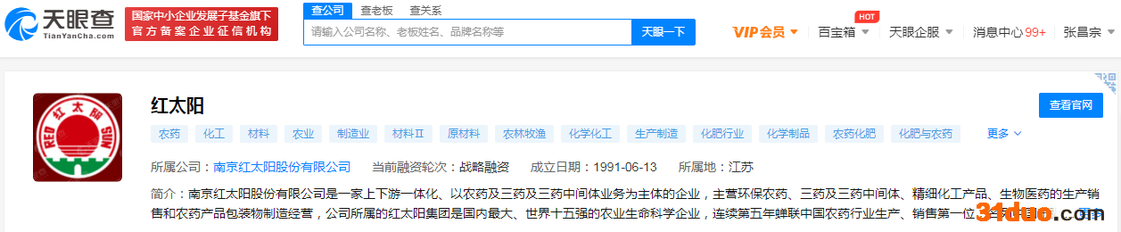 天眼查APP显示,ST红太阳是一家上下游一体化、以农药及三药及三药中间体业务为主体的企业,主营环保农药、三药及三药中间体、精细化工产品、生物医药的生产销售和农药产品包装物制造经营。ST红太阳被证监会立案调查的后续进展,本栏目也将持续保持关注。