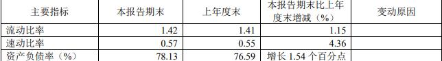 公司资产负债率为78.13%,上年度末为76.59%,比上年度末增长1.54个百分点。公司称,剔除并不构成实际偿债压力的预收款项后,公司实际资产负债率为69.44%,净负债率为69.59%,债务融资加权平均成本为4.65%。