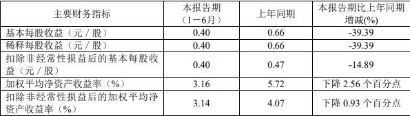 今年上半年,金地集团基本每股收益为0.40元/股,同比下降39.39%;加权平均净资产收益率为3.16%,同比下降2.56个百分点。