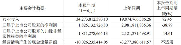金地集团昨晚披露的2021年半年度报告显示,今年上半年,公司实现营业收入342.74亿元,同比增长72.45%;实现归属于上市公司股东的净利润18.25亿元,同比减少38.79%;实现归属于上市公司股东的扣除非经常性损益的净利润为18.11亿元,同比减少14.61%;经营活动产生的现金流量净额为-100.26亿元,上年同期为-32.77亿元。