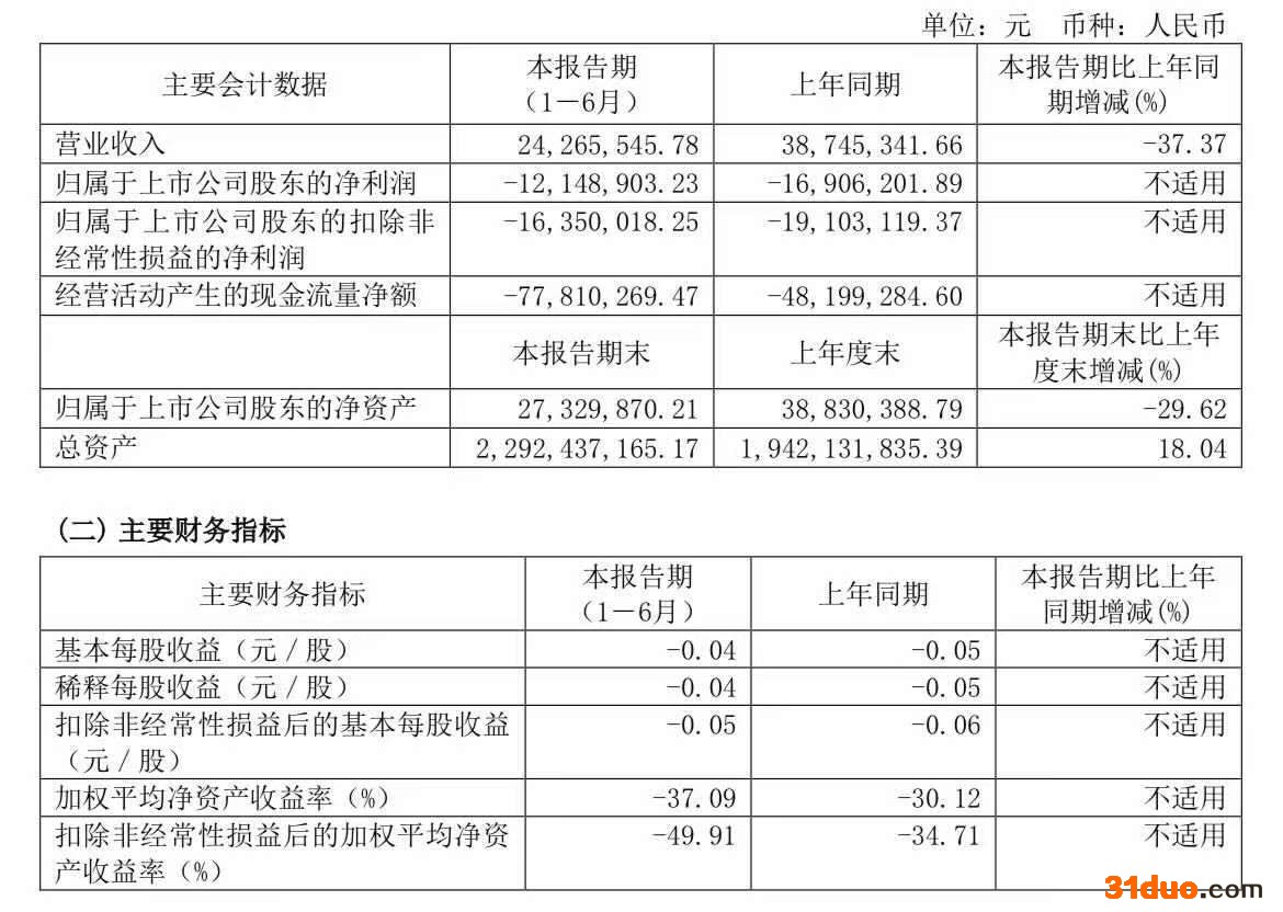 *ST亚星表示,上半年营业收入变动系公司新建 CPE 生产装置于5月调试完毕,产能尚末恢复,产量少,收入低。营业成本变动系CPE装置报告期内产量少,致使销售收入低,对应营业成本低。销售费用变动系本期销售人员工资性支出较同期增加。经营活动产生的现金流量净额变动主要是本期原料PE采购支出较同期增加,同时CPE回款较同期减少。