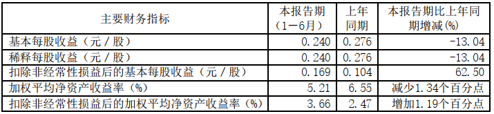 今年上半年,新湖中宝基本每股收益为0.240元/股,同比减少13.04%;加权平均净资产收益率为5.21%,同比减少1.34个百分点。
