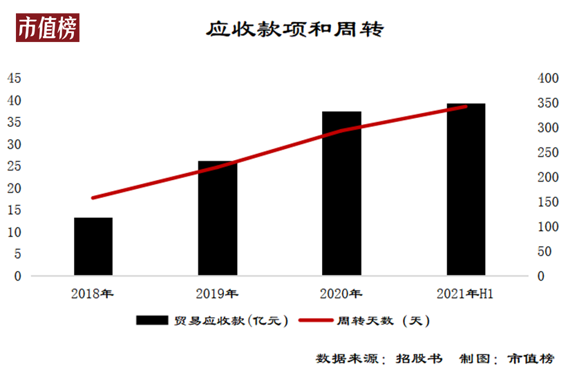 其一在于,应付款的金额远低于应收款,其二是应付款项的账期低于应收款项账期。此外,截止2021年6月30日,贸易应付款的周转天数又降低至172天。