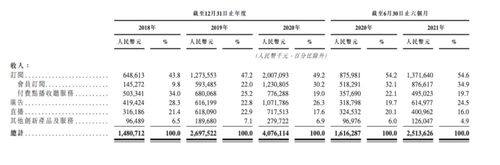 内容成本与渠道成本居高不下的同时,招股书显示,喜马拉雅主要变现渠道包括付费订阅、广告、直播以及其他创新产品和服务。