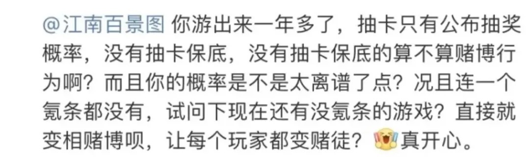 9月14日,上海消保委发文表示,因有不少公众号粉丝吐槽游戏里抽奖套路深,“不论什么游戏,顶级卡牌、人物、道具等都是非常难抽的,想要获得一个好东西,无疑要花费大量时间、精力或金钱,也有可能你花了大笔钱也抽不到。”为此,上海消保委特意选择一款手游《江南百景图》进行测试抽奖情况。据悉,这是一款热度较高,也有许多玩家吐槽其抽奖概率的古风模拟经营类手游。