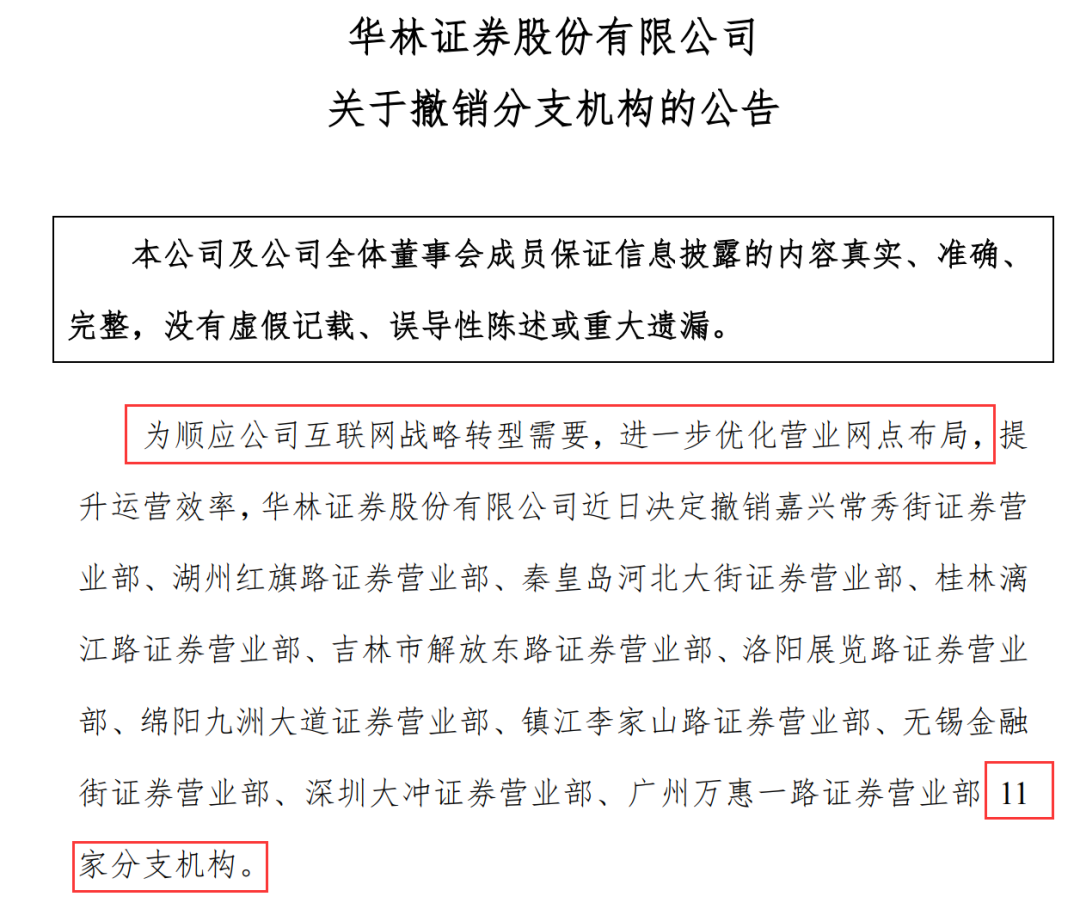 就在一周前,华林证券发布公告称,为顺应公司互联网战略转型需要,进一步优化营业网点布局,提升运营效率,公司近日决定撤销嘉兴常秀街证券营业部等11家分支机构。中国证券报·中证金牛座记者梳理发现,今年以来,华林证券累计撤销了25家营业部。虽然营业部数量大幅减少,但其通过优化营业网点布局,逐步提升分支机构效能,仍推动了零售业务的增长。